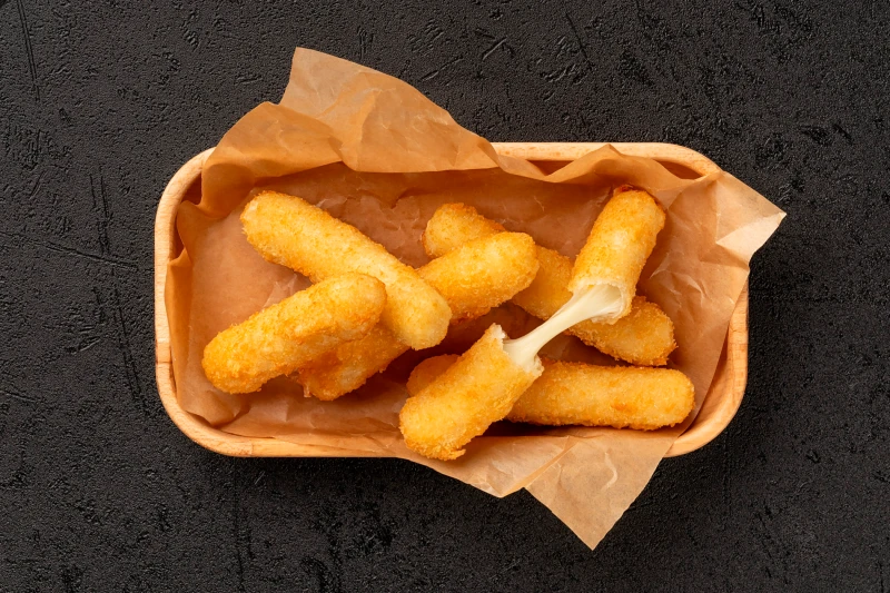 Хрустящие палочки в золотистой панировке с тянущимся сыром моцарелла внутри.